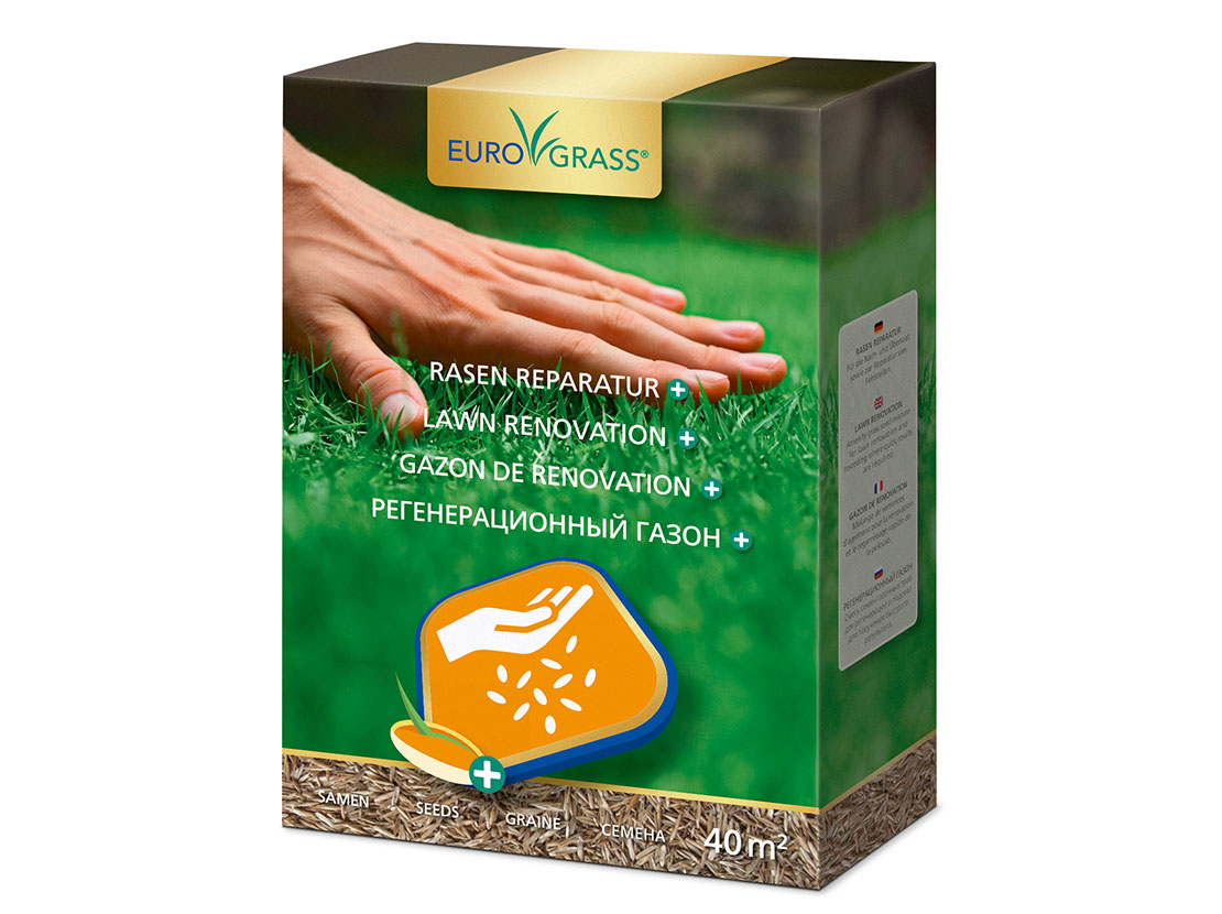 EuroGrass Rasensaatgut stammt direkt vom Gräserzüchter und beinhaltet nur Premium-Gräser. An den Gräsersamen in der Mischung Rasen Reparatur + haftet eine sogenannte Biostimulanz. Sie besteht aus einer speziellen Rezeptur von biologischen Hilfsstoffen, die den Keimling beim Wachstum optimal versorgt. Ein Rasensamen ist sehr anspruchsvoll und muss gute Bedingungen wie Feuchtigkeit und Wärme vorfinden, um keimen zu können. Oft sind die Bedingungen nicht optimal. Die Hüllmasse, die wir dem Samen mitgeben, hilft dem Keimling schlechtere Umweltbedingungen auszugleichen. Für Sie bedeutet das Plus an der Rasen Reparatur + mehr Sicherheit für eine erfolgreiche Nachsaat.